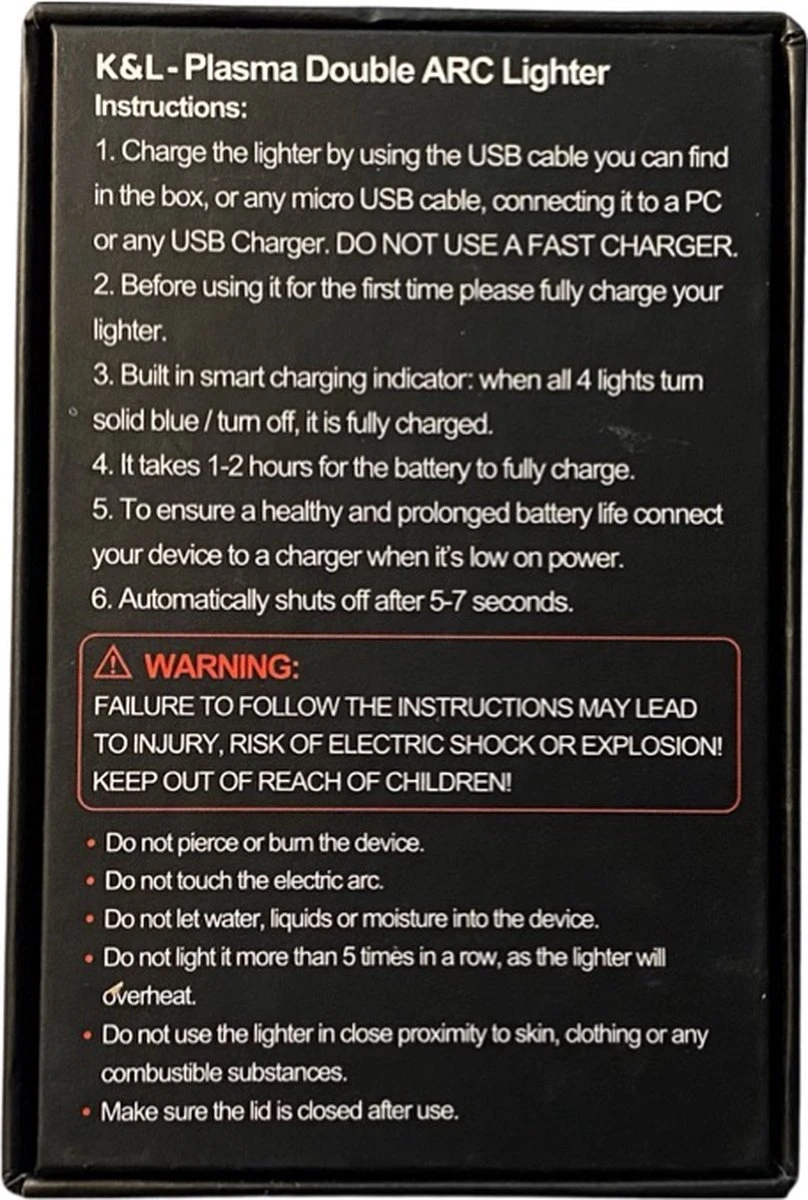 K&L Elektrische Plasma Aansteker – Vuurwerk – USB Oplaadbaar – Storm Bestendig