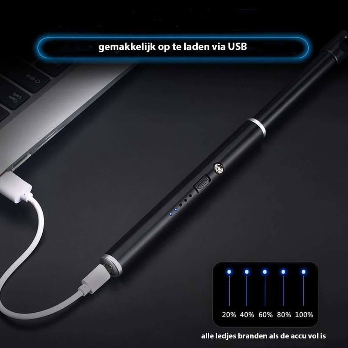 Oplaadbare Lange Dunne Elektrische Aansteker – Duurzame Plasma Aansteker – Inclusief Cadeauverpakking – BBQ – Kaarsen – Zwart