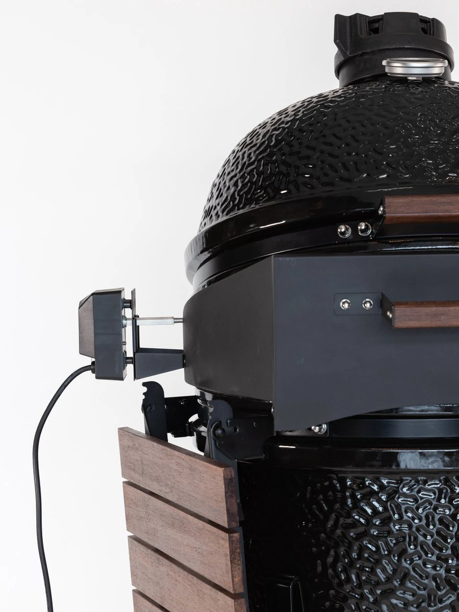 De Bastard rotisserie verzekert niet alleen de perfecte grill door voorzichtig roterend voedsel boven het vuur, het transformeert je kamado in de perfecte pizzaoven. De deksel blijft gesloten, je kunt het deurtje openen en je pizza er super makkelijk in schuiven zonder warmte te verliezen!